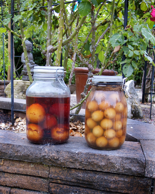 Sounds like a great time. We are so lucky in CA to be able to grow so many different things to have available all year long. (except sour cherries, which really rankles me) Our neighbor has a pomegranite tree that sits just outside my home office window. Its beginning to fruit and is still in bloom with vivid, deep orange-red flowers peeking out here and there. I sneak the fruit that hangs on our side of the fence once it's ready to pick. Gotta get them off the tree quick before they split open..they can be messy!
