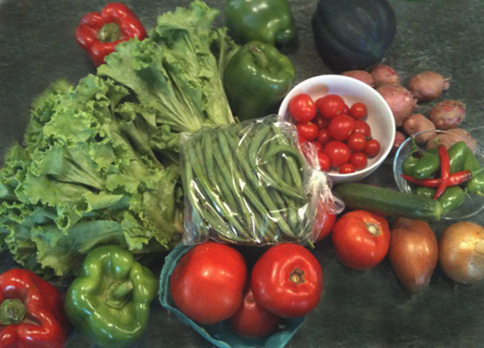 OK—not great but a little cleaner. First I cropped it tighter so as to not have so much ugly counter. I then used the rubber stamp to copy the remaining counter and eliminate the crap. I did not have to change the exposure, color balance or contrast, which is impressive, Apple. I did burn in the bright glare spots and dodged the acorn squash upper right. In NONE of these photos did I increase the color saturation—really. These beauties are plenty naturally saturated on their own.