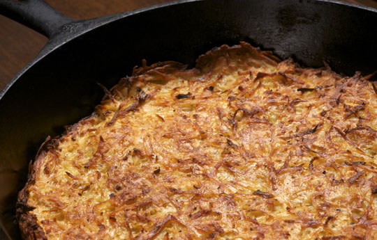 Potato Kugel, cooked in an iron skillet/photo by Donna Turner Ruhlman