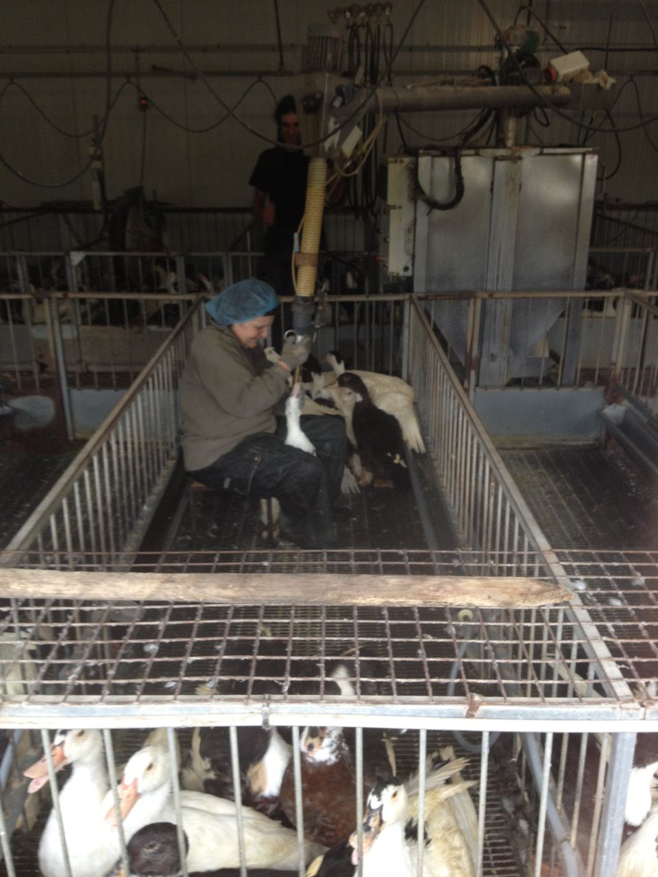 A foie gras farmer feeding her ducks. Photo by Michael Ruhlman.