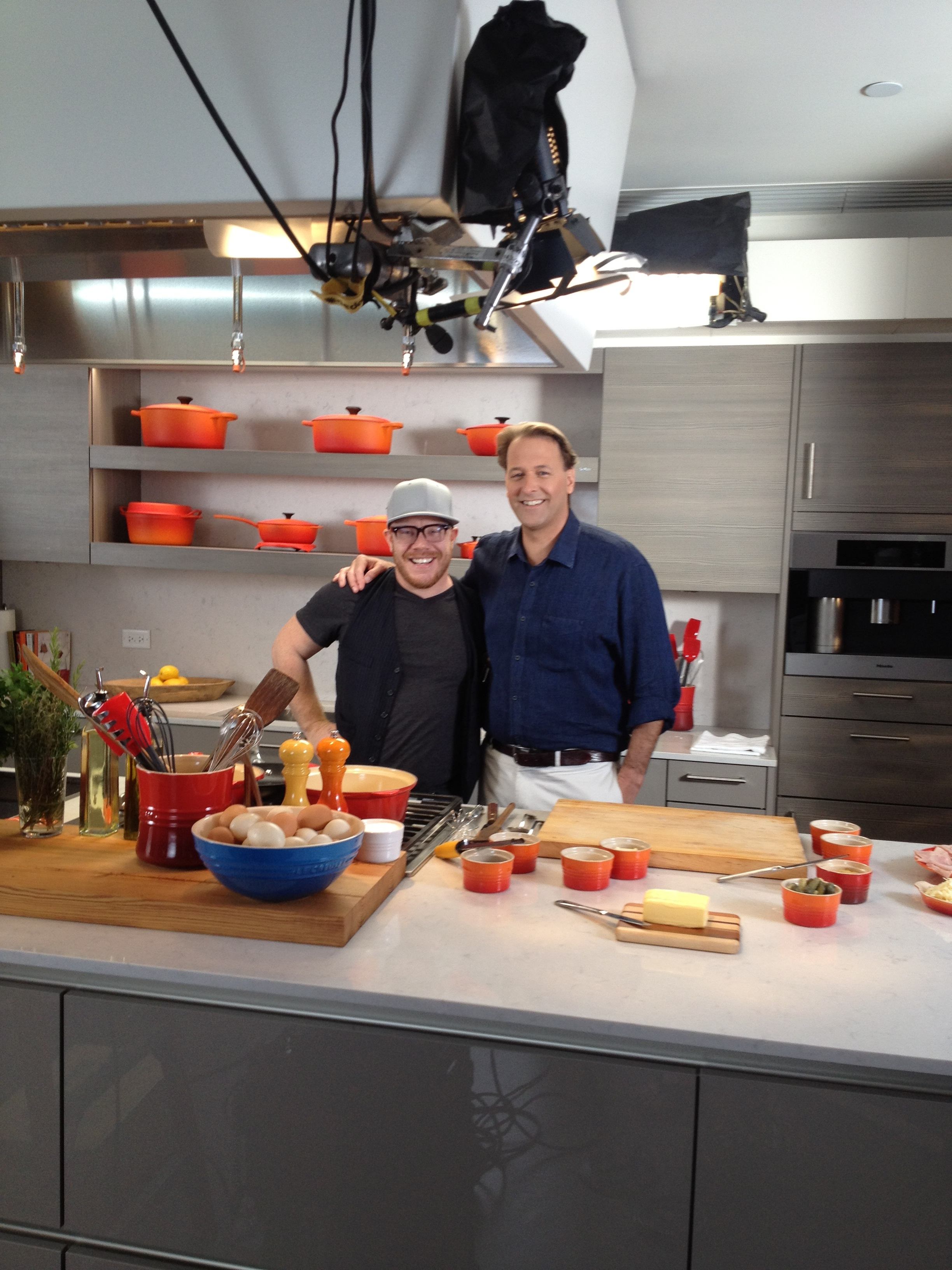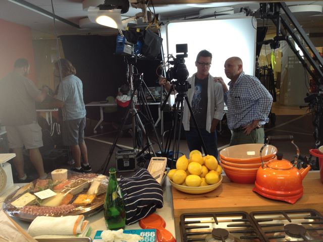 Part of the filming required my scooting up and down the street in front of the cheese shop Goat Sheep Cow in this sweet little Le Creuset truck.