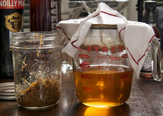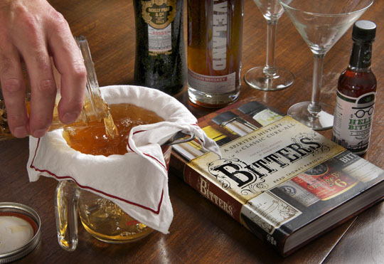 Straining bitters after 1 month's maceration. Photos by Donna Turner Ruhlman.