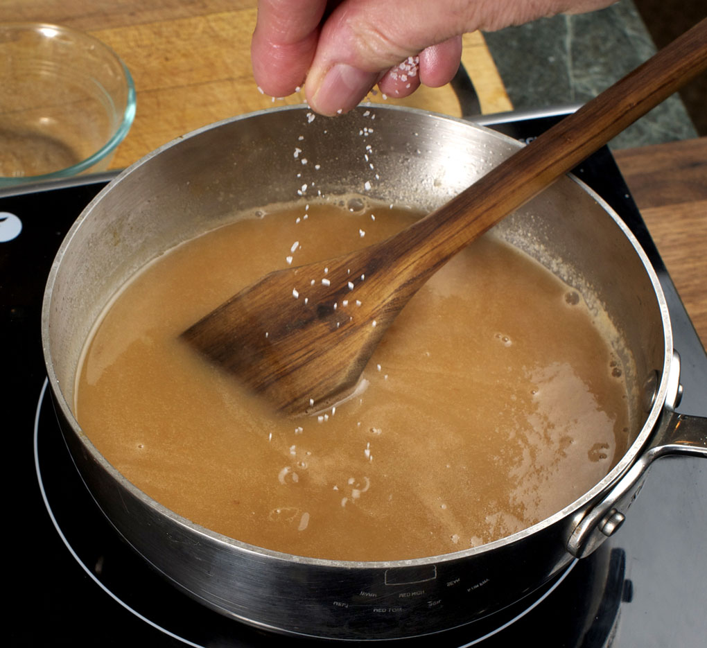 4. Keep cooking until the gravy comes to a boil and thickens. Season with salt to taste. Skim and discard any foam that collects on the side of the pan. Add a few drops of lemon juice or white wine vinegar.