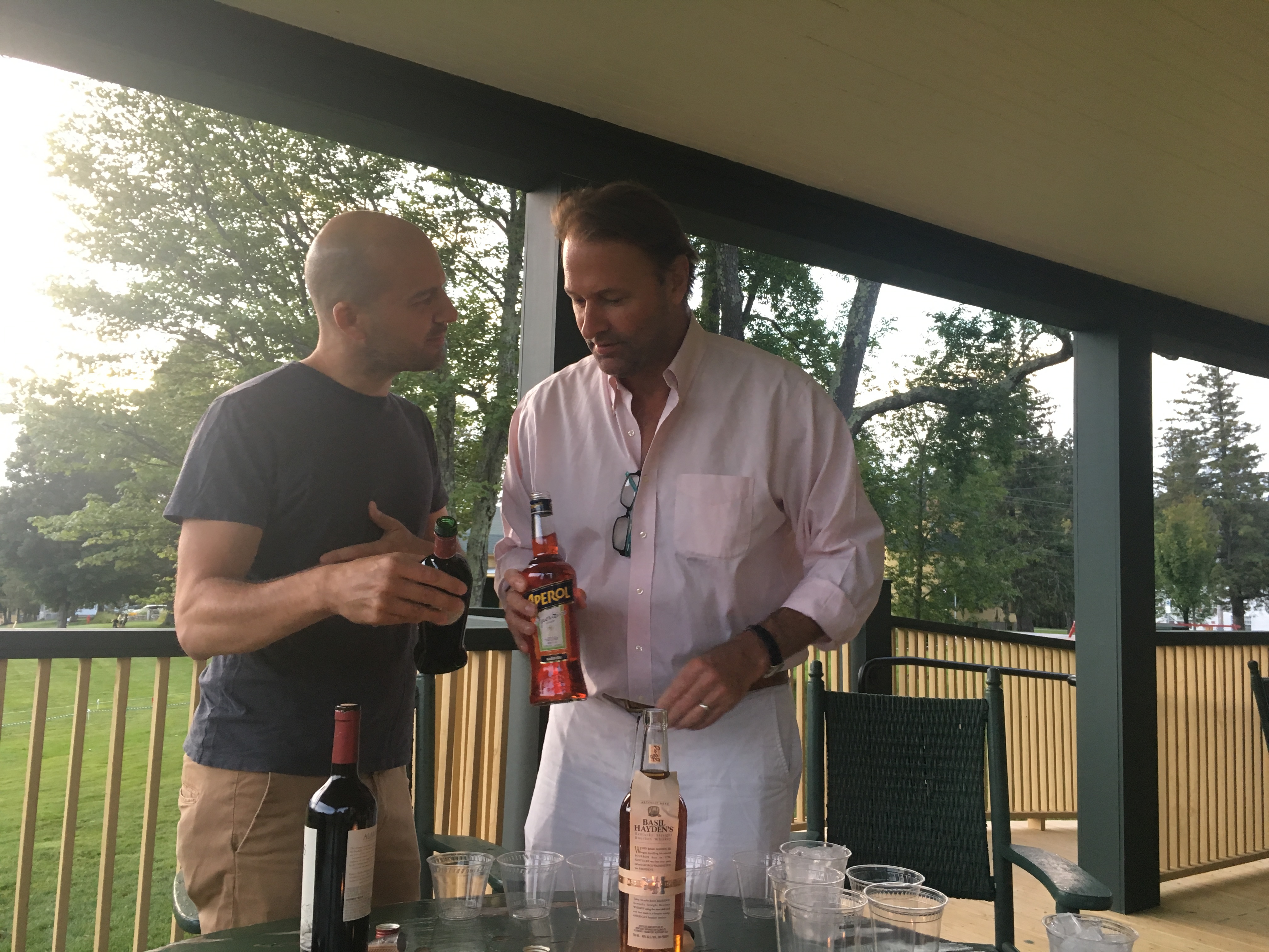 Chris, who is also the artistic director of Grub Street in Boston, one of the country's leading creative writing centers, made the drinks for us and my wife, Ann, who was also on the faculty that summer, and we enjoyed this fabulous elixir on the porch in the summer twilight. Photographic evidence shows that Chris, who was soon to publish Leading Men, his excellent novel reimagining the relationship of Tennessee Williams and Frank Merlo, had brought Aperol as the bitter component (an acceptable variation, one that might allow for another great summer cocktail, the Aperol spritz later in the week). And now that I think about it, Chris and his husband were the last people Ann and I had for dinner before lockdown this past winter.