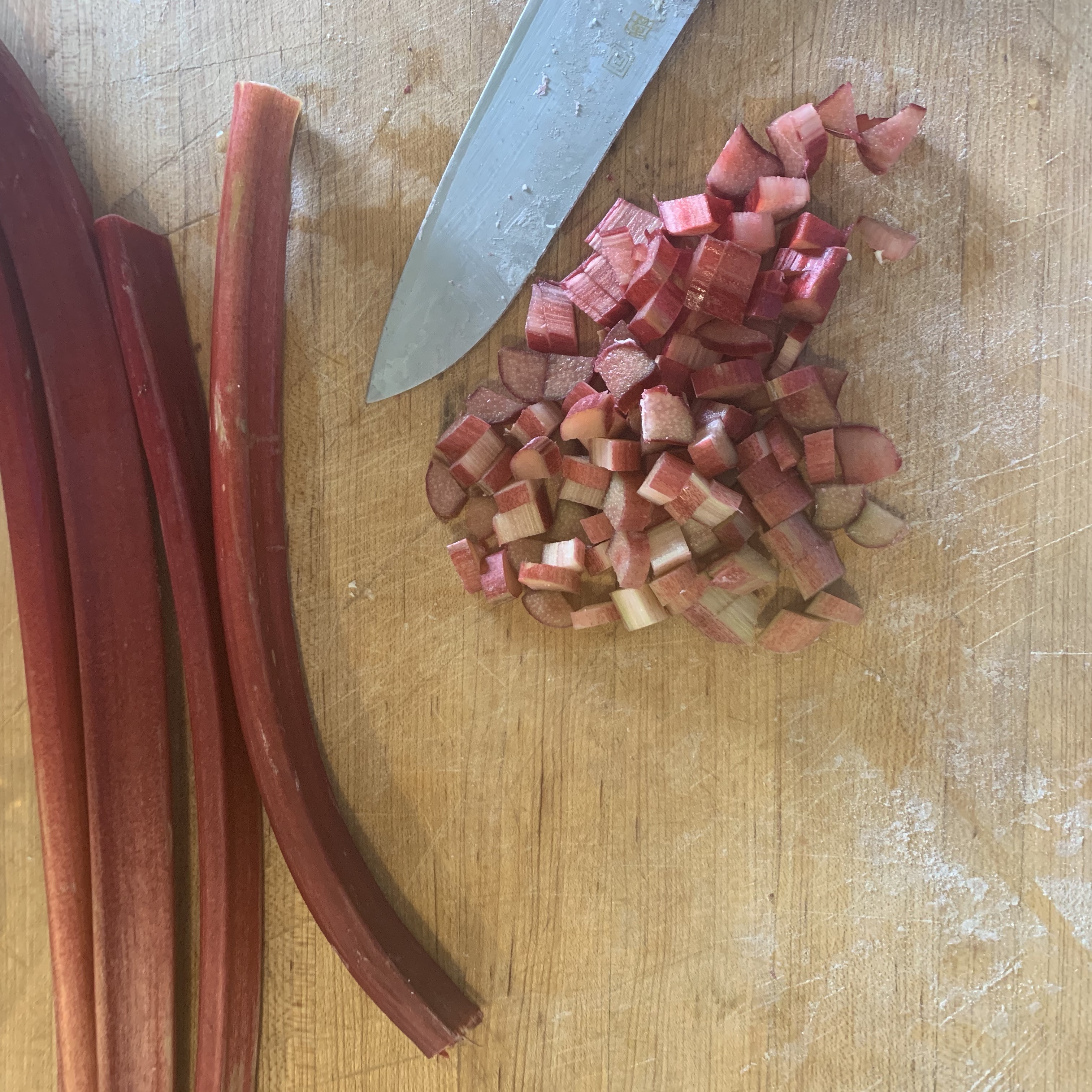 • 1-½ pounds rhubarb, small dice (or a mix of strawberries and rhubarb; you'll need about 5 cups diced fruit)
